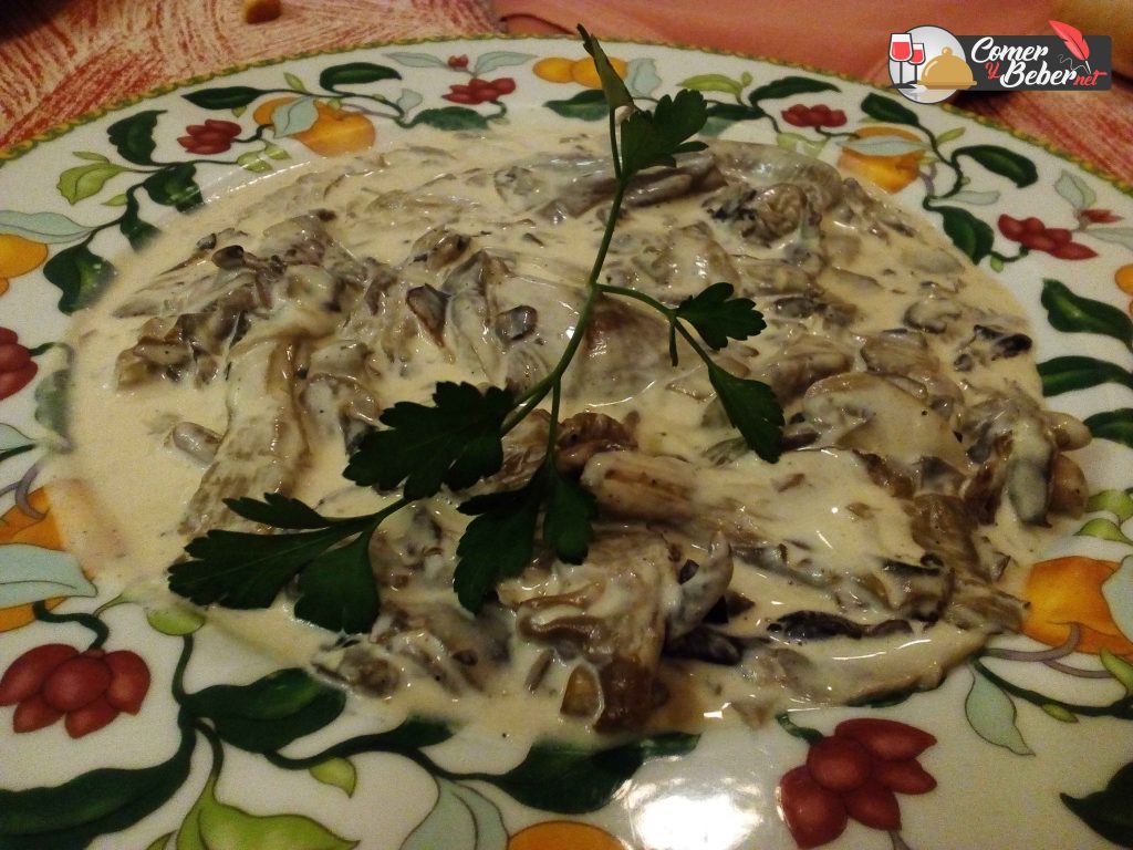 Setas super tiernas con una salsa Funghi con un parmesano muy suave, riquísima